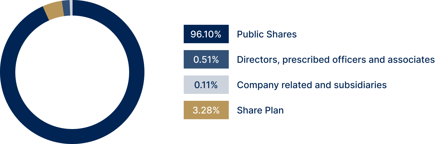 A portion of the share register is held through nominees and custodians, which is standard practice for listed companies and reflects underlying beneficial ownership.